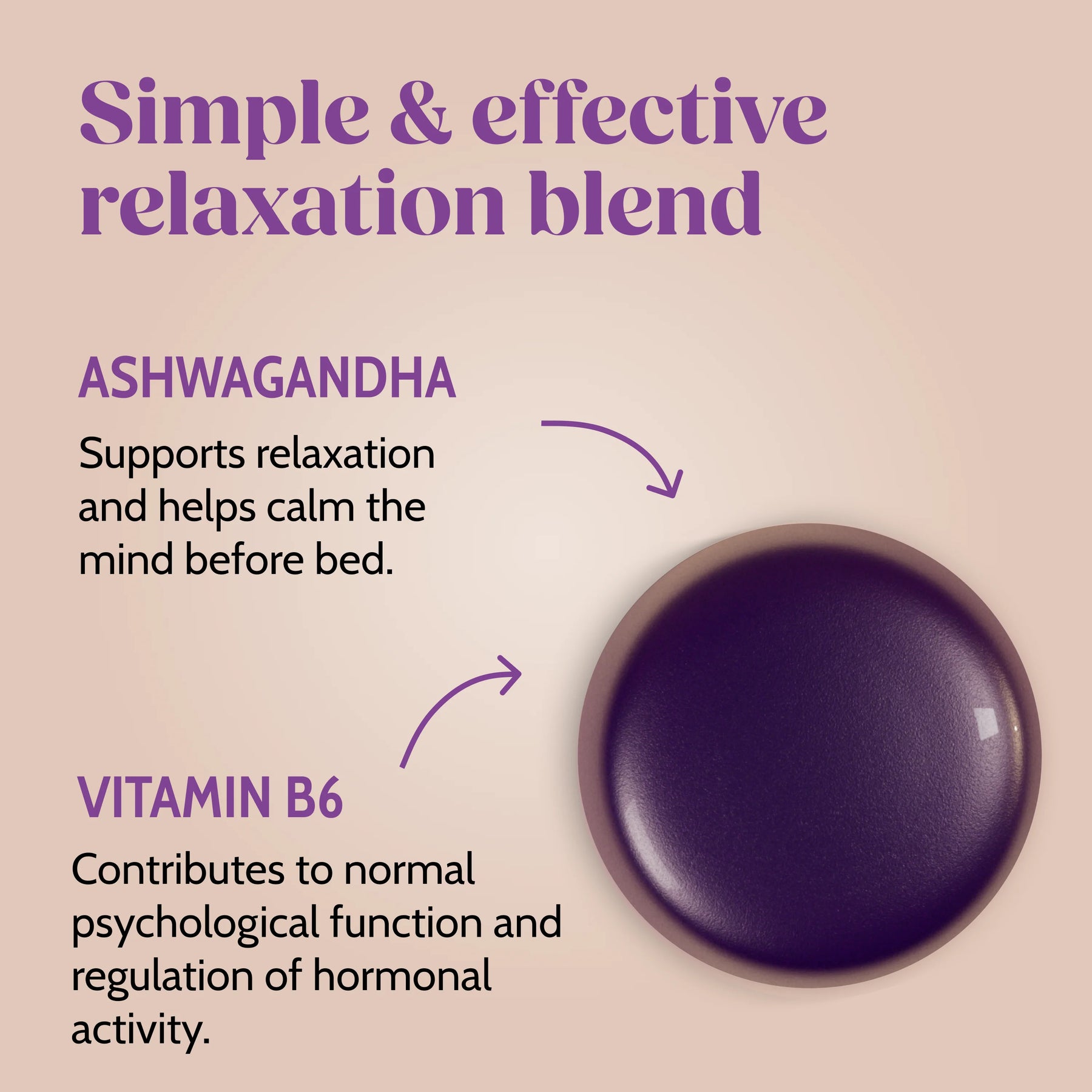 Sleep Soundly contains ashwagandha extract, Vitamin B6, natural apple flavouring, and naturally derived colours.